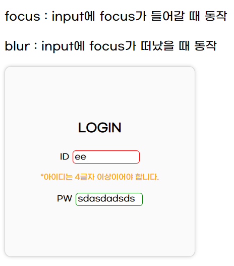 <h3>blur : input에 focus가 떠났을 때 동작</h3>