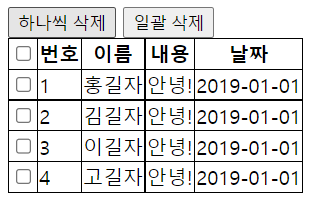 예제 ) 하나씩 삭제 | 일괄 삭제 , 전체 체크 | 전체 체크 해제