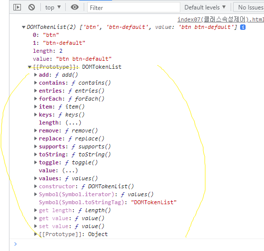 .classList : 클래스명을 배열로 얻음