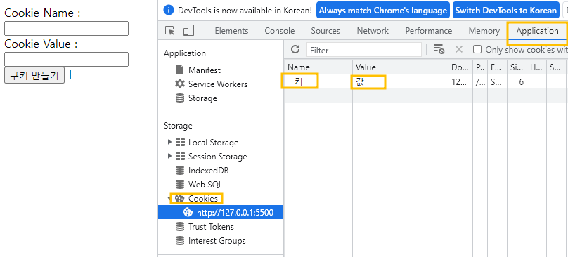 예제 1 ) 🍪 Cookie의 이름과 🍪 Cookie의 값을 입력 받아 🍪 쿠키를 만들고