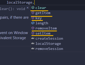 setItem(key, value) – 키-값 쌍을 보관합니다.