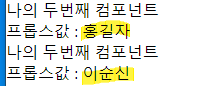 <MyComponent2 name={'홍길자'}/>