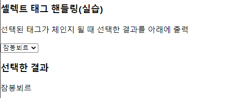 예제 2) 선택된 태그가 체인지 될 때 선택한 결과를 아래에 출력
