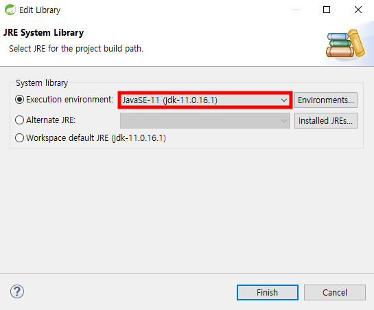 프로젝트 우클릭 - build path - configure build path - jdk버전 변경