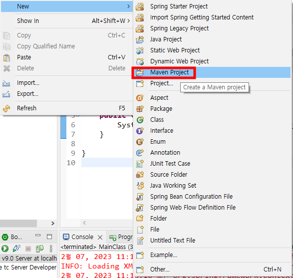 4. pom.xml 로 spring 라이브러리를 다운로드 하는 코드 작성