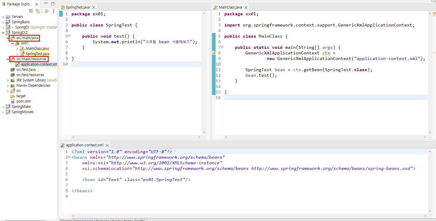 오늘은 ApplicationContext.xml 스프링 설정 파일을 이용하여 객체를 생성하고, GenericXmlApplicationContext클래스를 이용하여 생성된 객체를 접근하여 사용하는 방법에 대해 알아보겠습니다. 이해를 쉽게