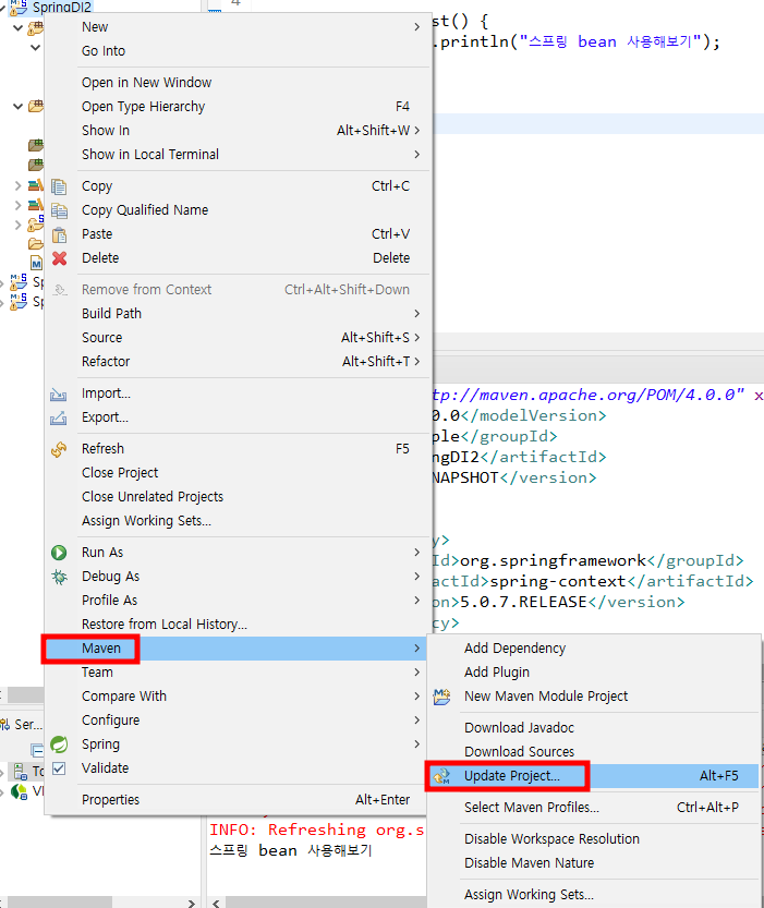 4. pom.xml 로 spring 라이브러리를 다운로드 하는 코드 작성