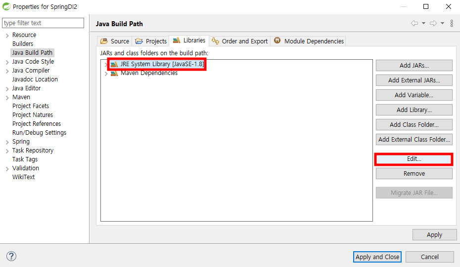 프로젝트 우클릭 - build path - configure build path - jdk버전 변경