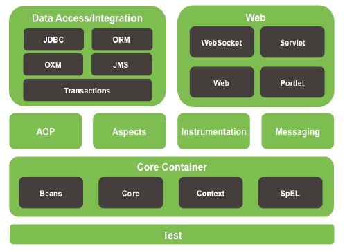 스프링 프레임워크는 주요 기능으로 DI, AOP, MVC, JDBC 등을 제공한다.