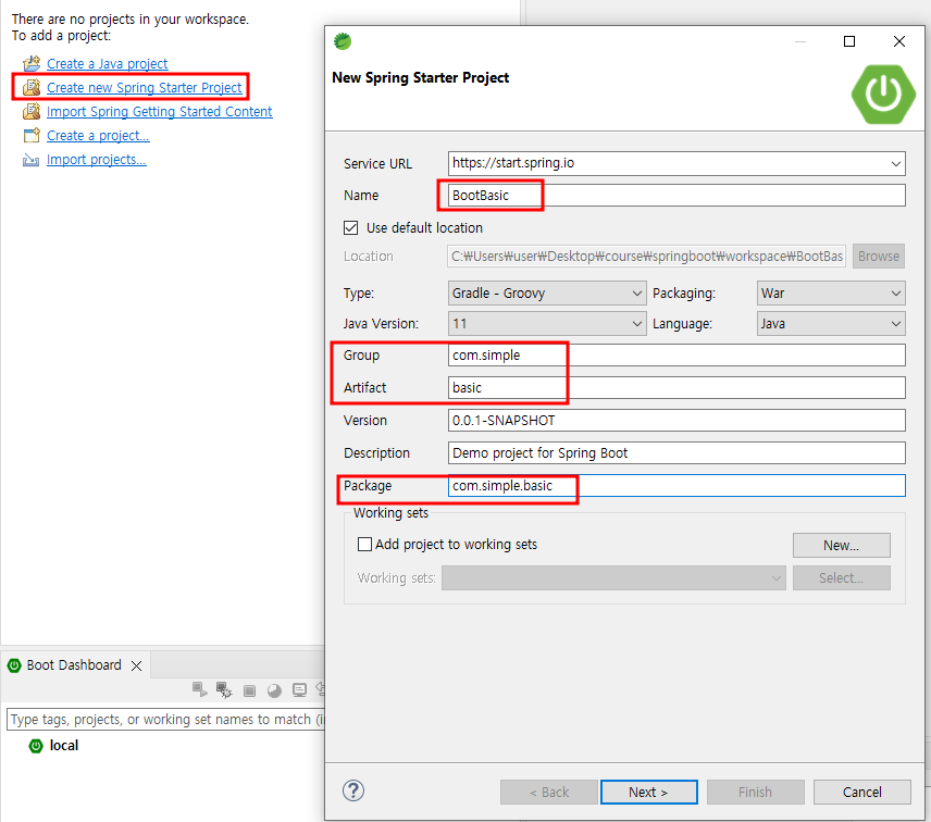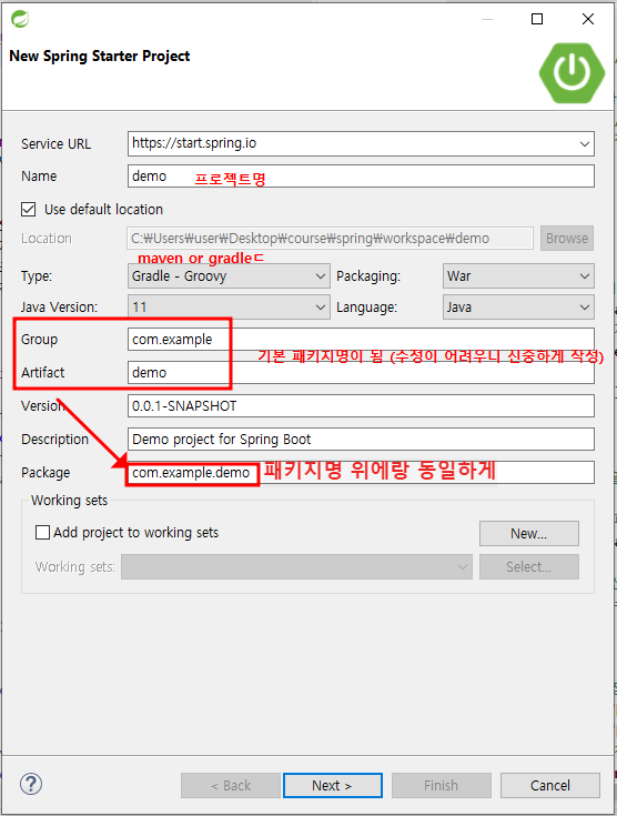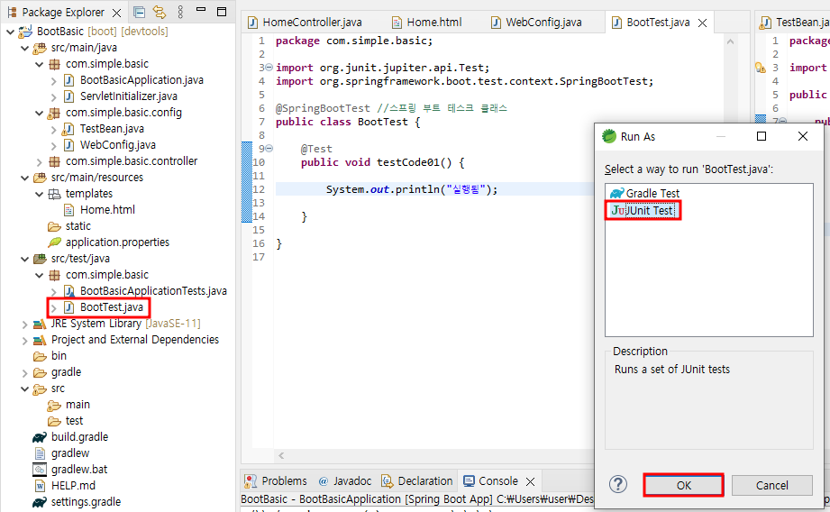 패키지를 생성할거면 기본 패키지 밑에 패키지들을 생성해서 작성해야한다!