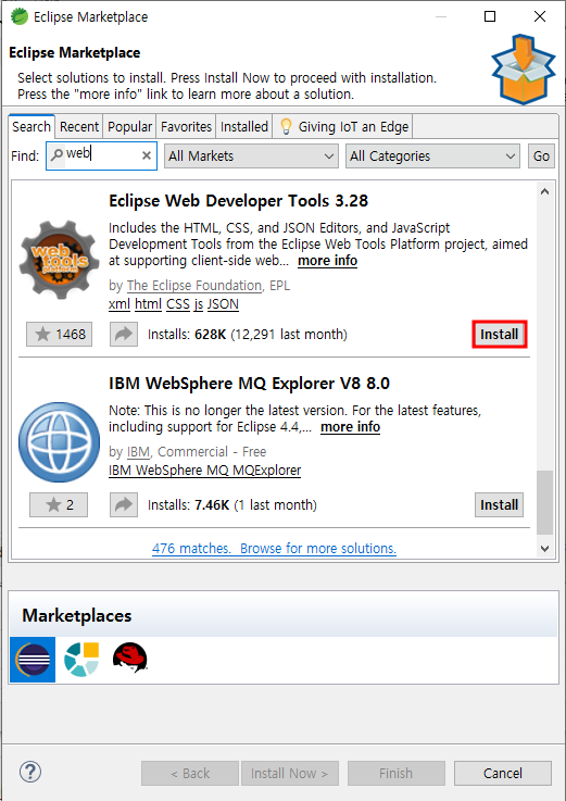 3. 마켓플레이스에서 플러그인 java web developer developer설치