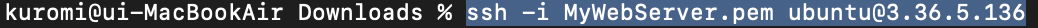 ssh -i 사본이름.pem 계정명@탄력적IP주소