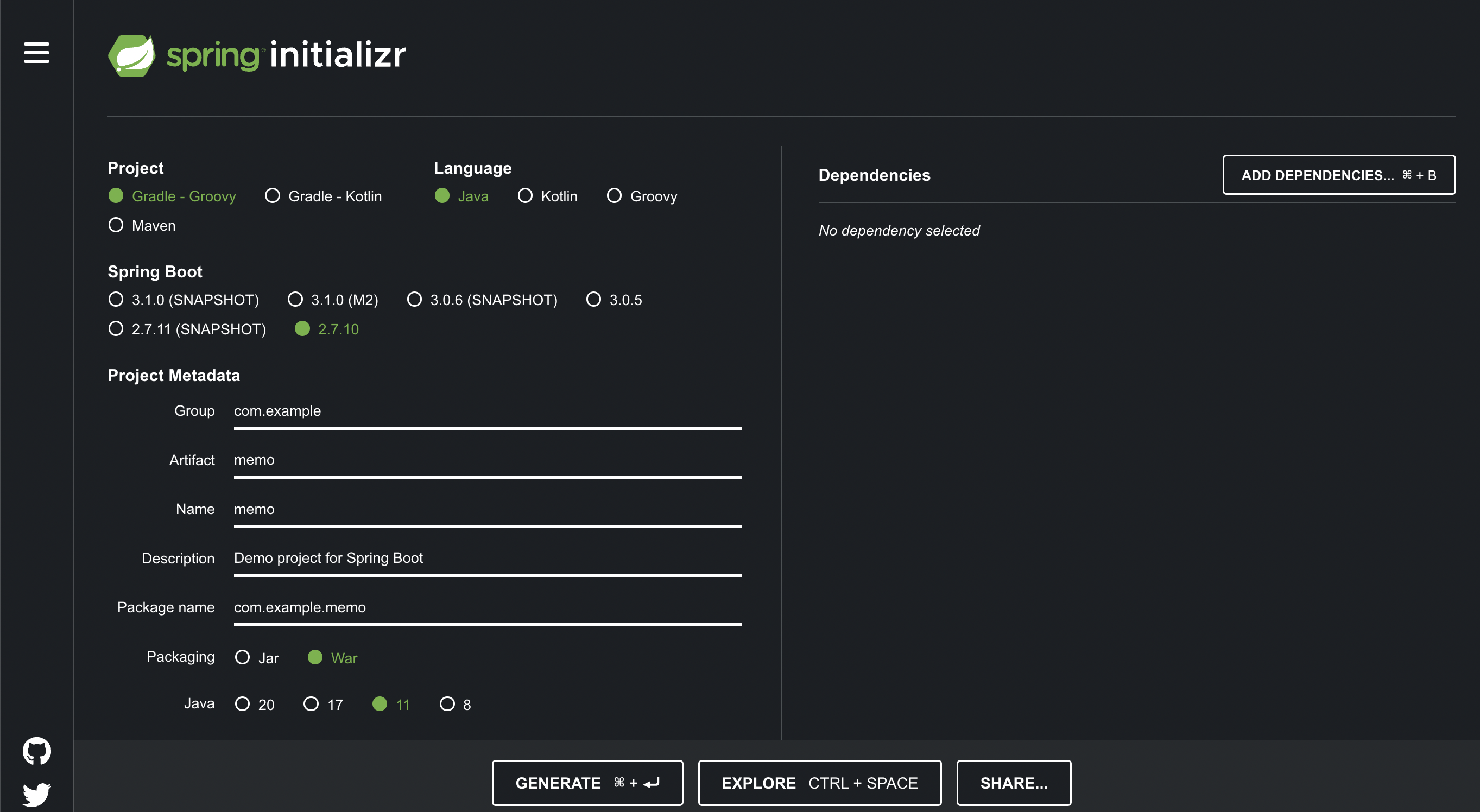 spring initializr 사용하기