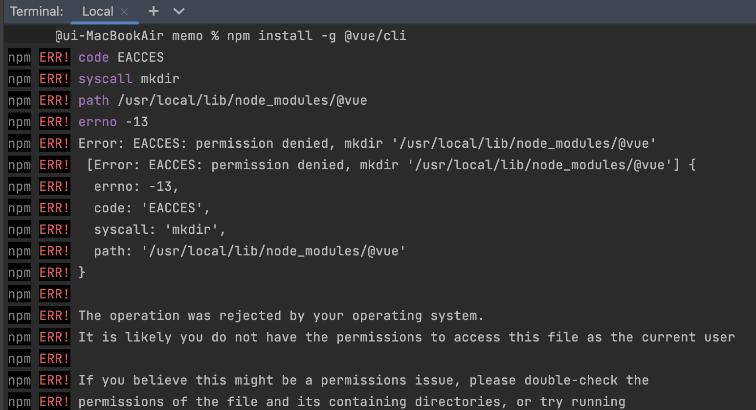 sudo npm install -g @vue/cli