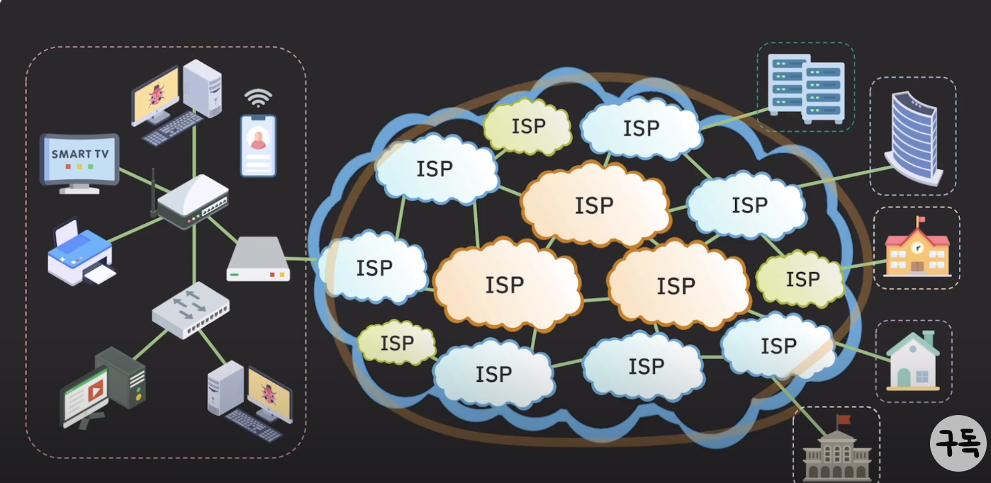 ISP들로 다 연결, 연결되어 있어 통신할 수 있다.