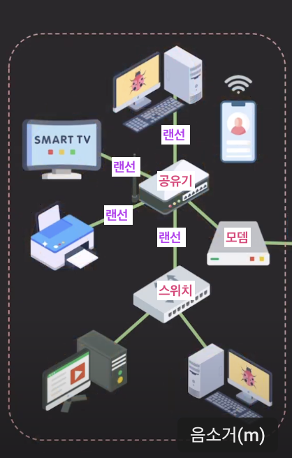 ex) 컴퓨터, 공유기, 모뎀, 스위치 등