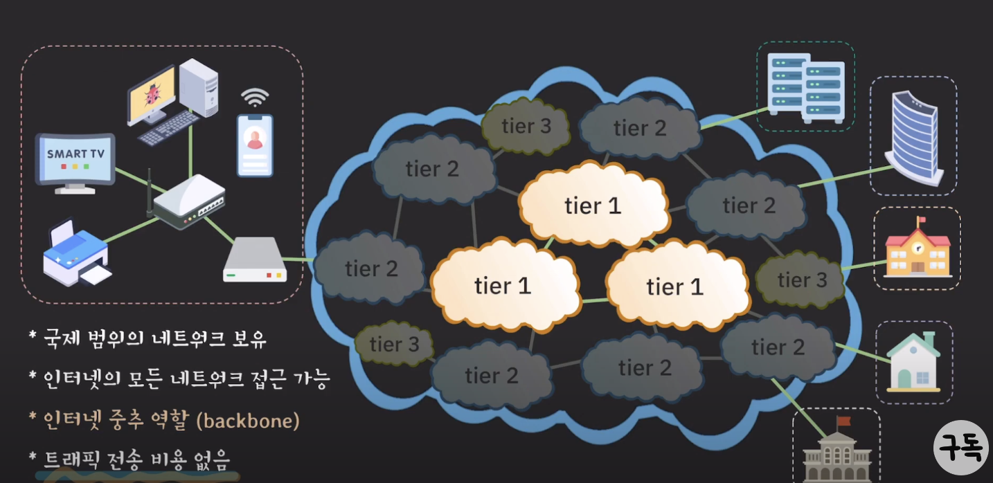 ISP들도 역할과 규모에 따라 tier가 나뉜다.