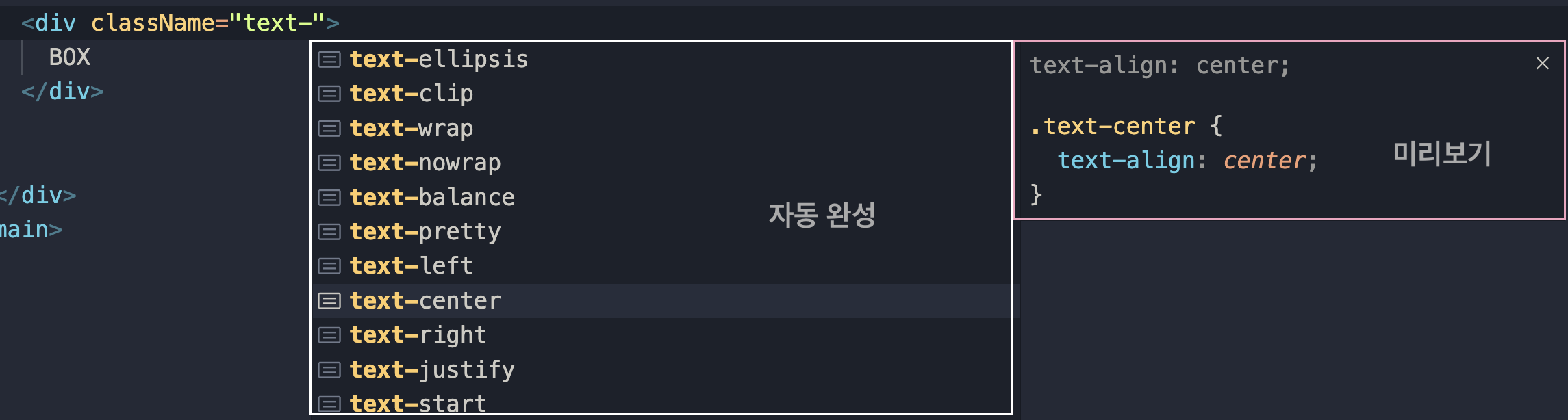 자동완성과 미리 어떤 css인지 볼 수 있습니다.