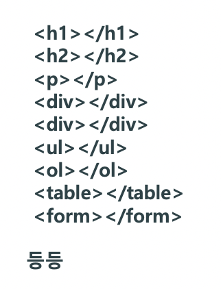 - 태그의 기본 형식 : <태그이름> 문서의 내용 </태그이름>