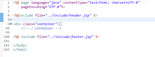 include 파일 생성 > header.jsp 와 footer.jsp 파일 생성
